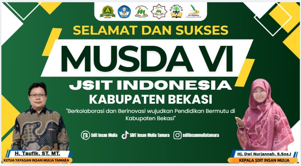 SDIT INSAN MULIA mengucapakan : “Selamat dan Sukses MUSDA VI JSIT KAB. BEKASI” 25 April 2026 ​Saatnya pendidik bergerak ! Mari Berkolaborasi dan Berinovasi wujudkan Pendidikan Bermutu di Kabupaten Bekasi. Siap membawa semangat inovasi digital untuk pendidikan kita